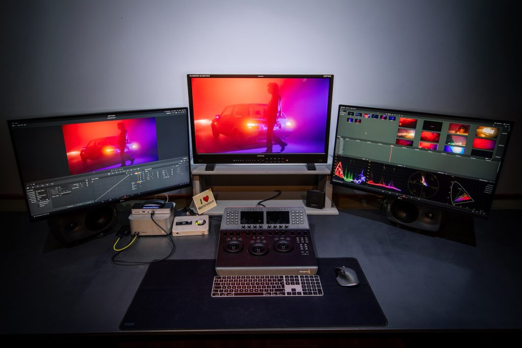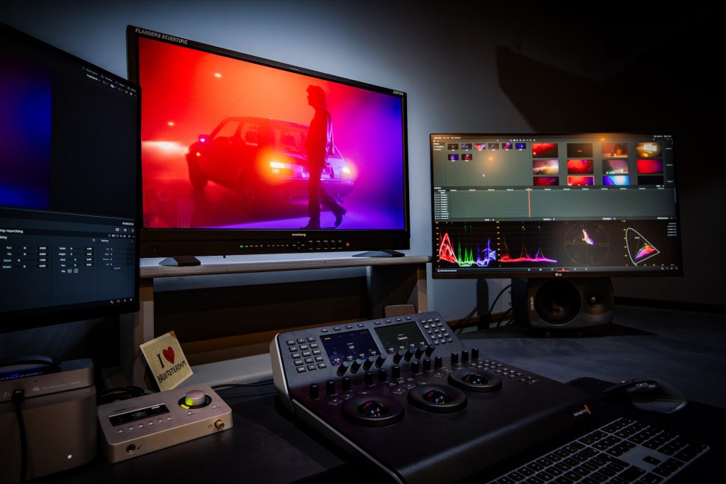 De suite draait rondom een professioneel Blackmagic Design grading-paneel voor precieze en intuïtieve controle tijdens het kleurproces. Daarnaast is er een extra bureau voorzien waar een producent of editor kan werken tijdens de sessie.